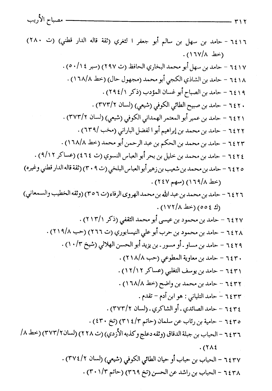 6426 - حامد بن محمد بن عبد الله بن محمد الهروى الرفاء (ت 356) (وثقه الخطيب والسمعاني) (ك 554) (خط 8/ 172).