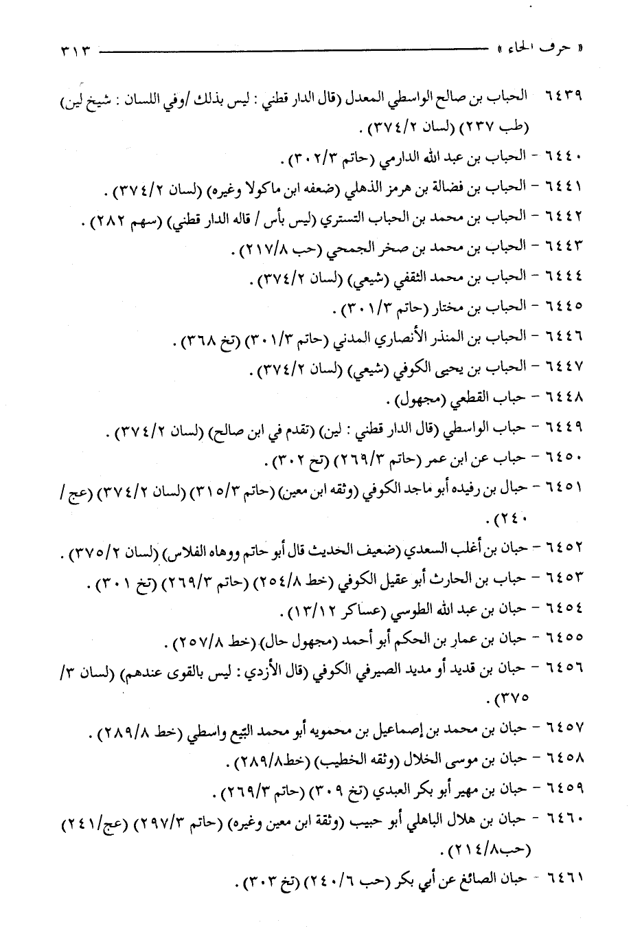 6460 - حبان بن هلال الباهلي أبو حبيب (وثقه ابن معين وغيره) (حاتم 3/ 297) (عج/ 241)