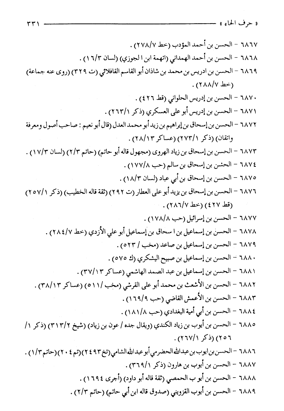 6881 - الحسن بن إسماعيل بن عبد الصمد الهاشمي (عساكر 13/ 37).