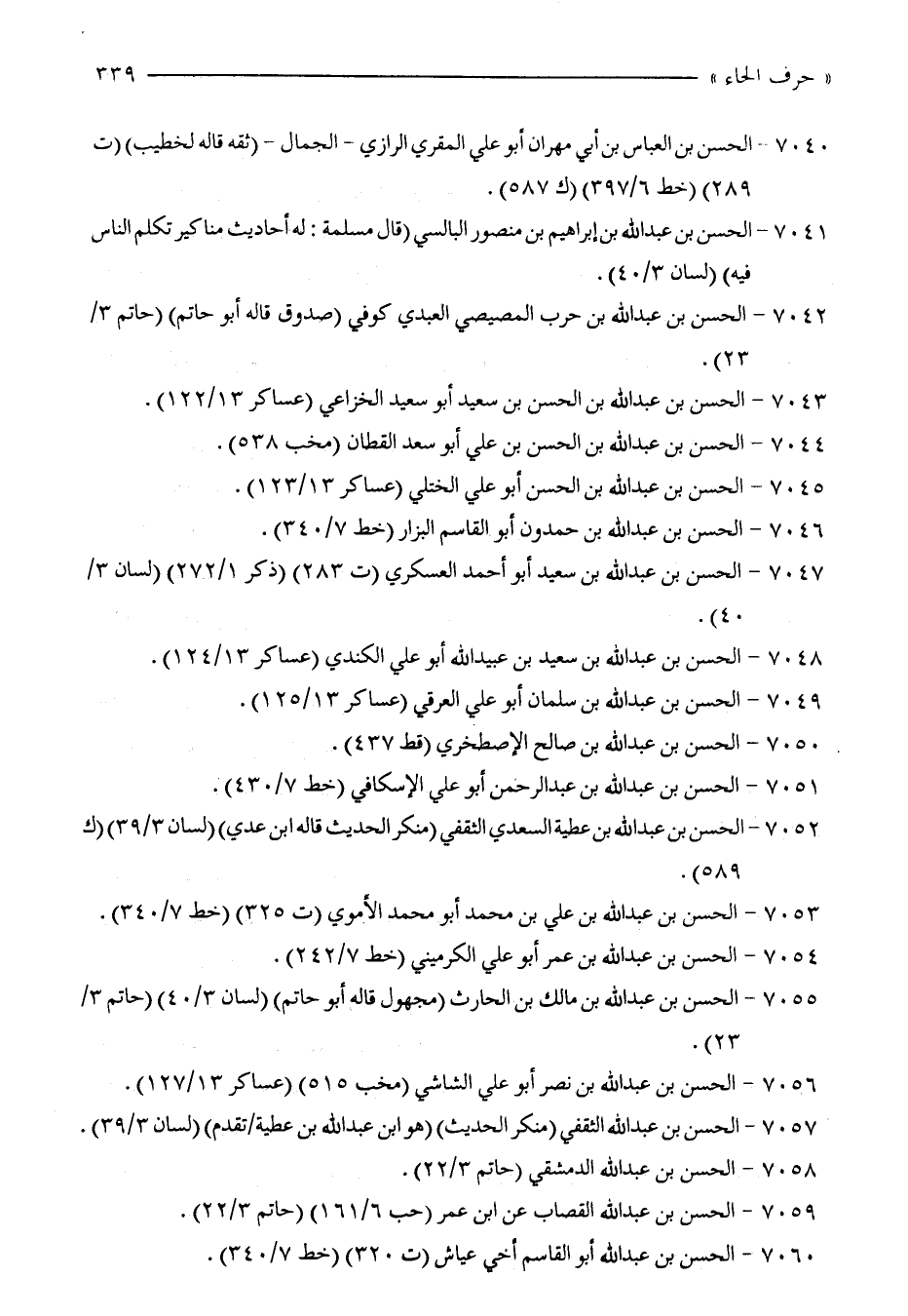 7042 - الحسن بن عبد الله بن حرب المصيصي العبدي كوفي (صدوق قاله أبو حاتم) (حاتم 3/