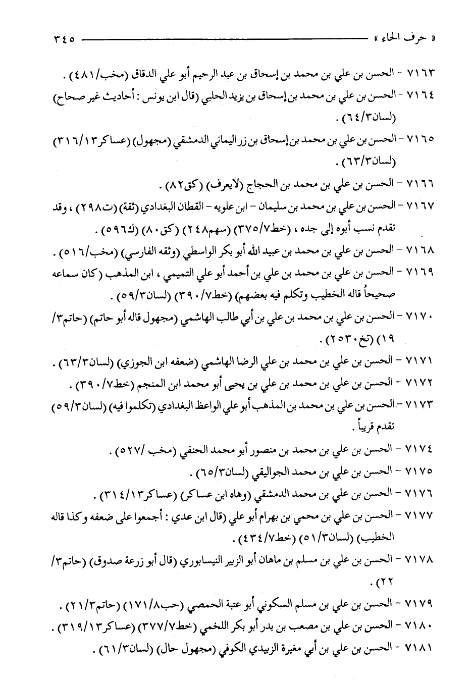 7176 - الحسن بن علي بن محمد الدمشقي (وهاه ابن عساكر) (عساكر 13/ 314).