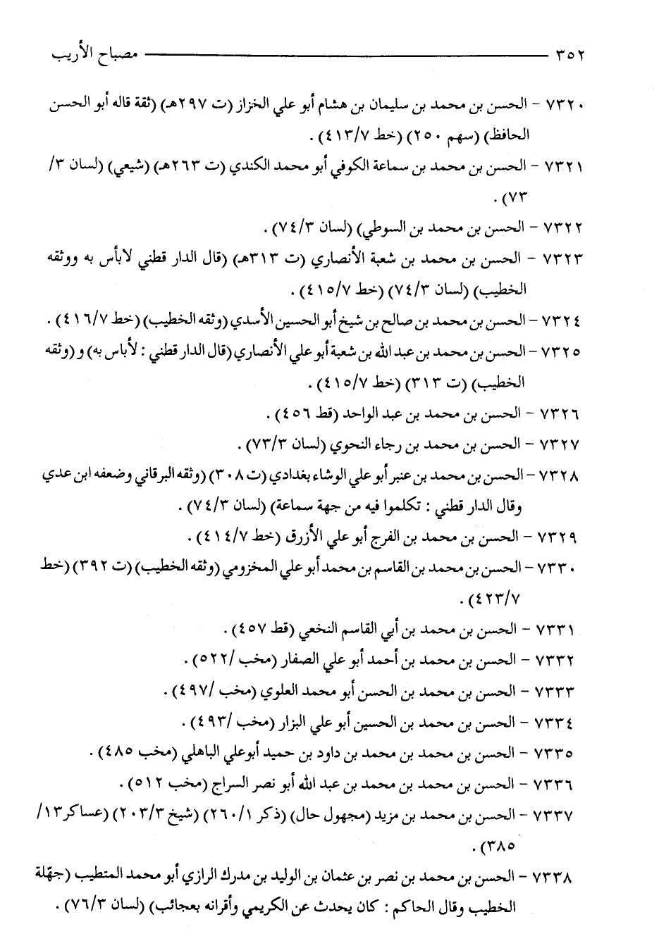 7322 - الحسن بن محمد بن السوطي (لسان 3/ 74).