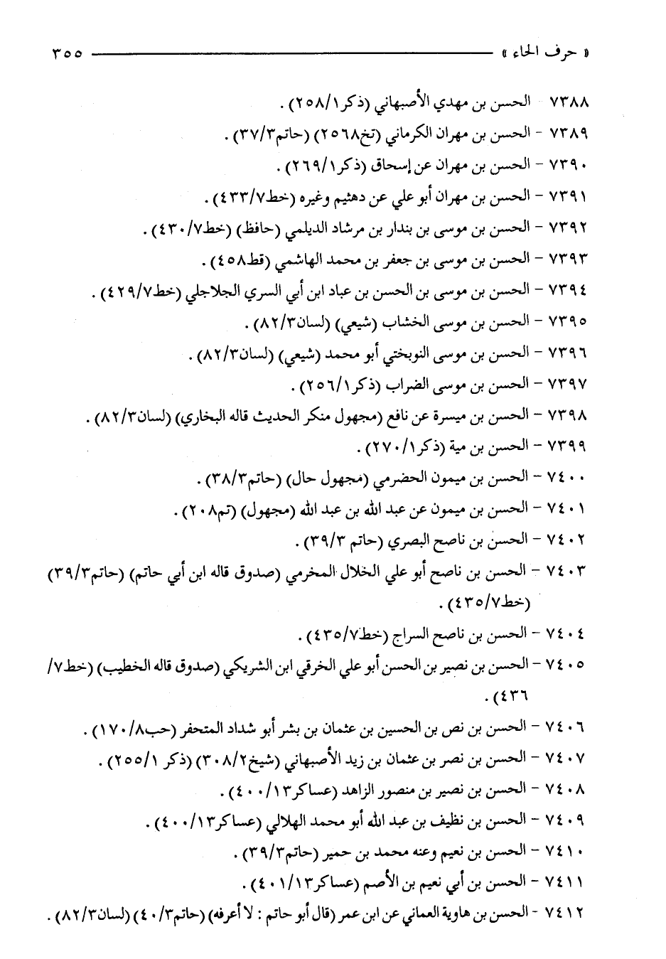7407 - الحسن بن نصر بن عثمان بن زيد الأصبهاني (شيخ 2/ 308) (ذكر 1/ 255).
