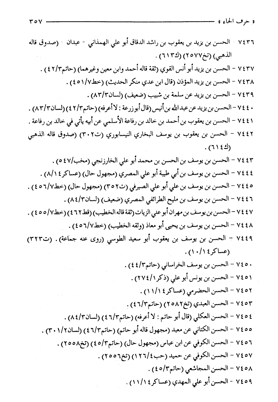 7447 - الحسن بن يوسف بن مهران أبو علي الزيات (ثقة قاله الخطيب) (خط 462) (خط 7/ 455).