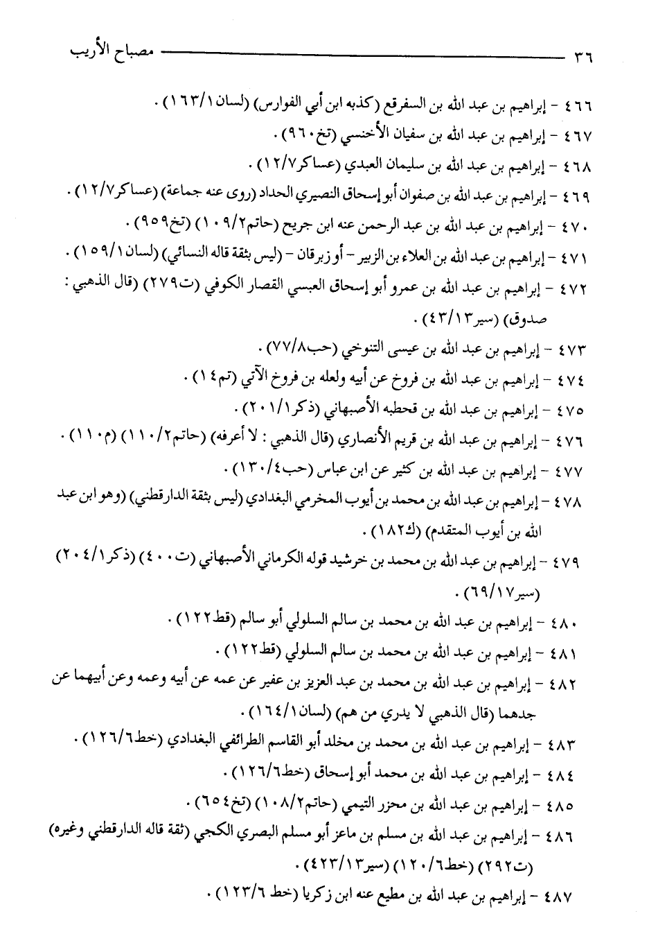 487 - إبراهيم بن عبد الله بن مطيع عنه ابن زكريا (خط 6/ 123).