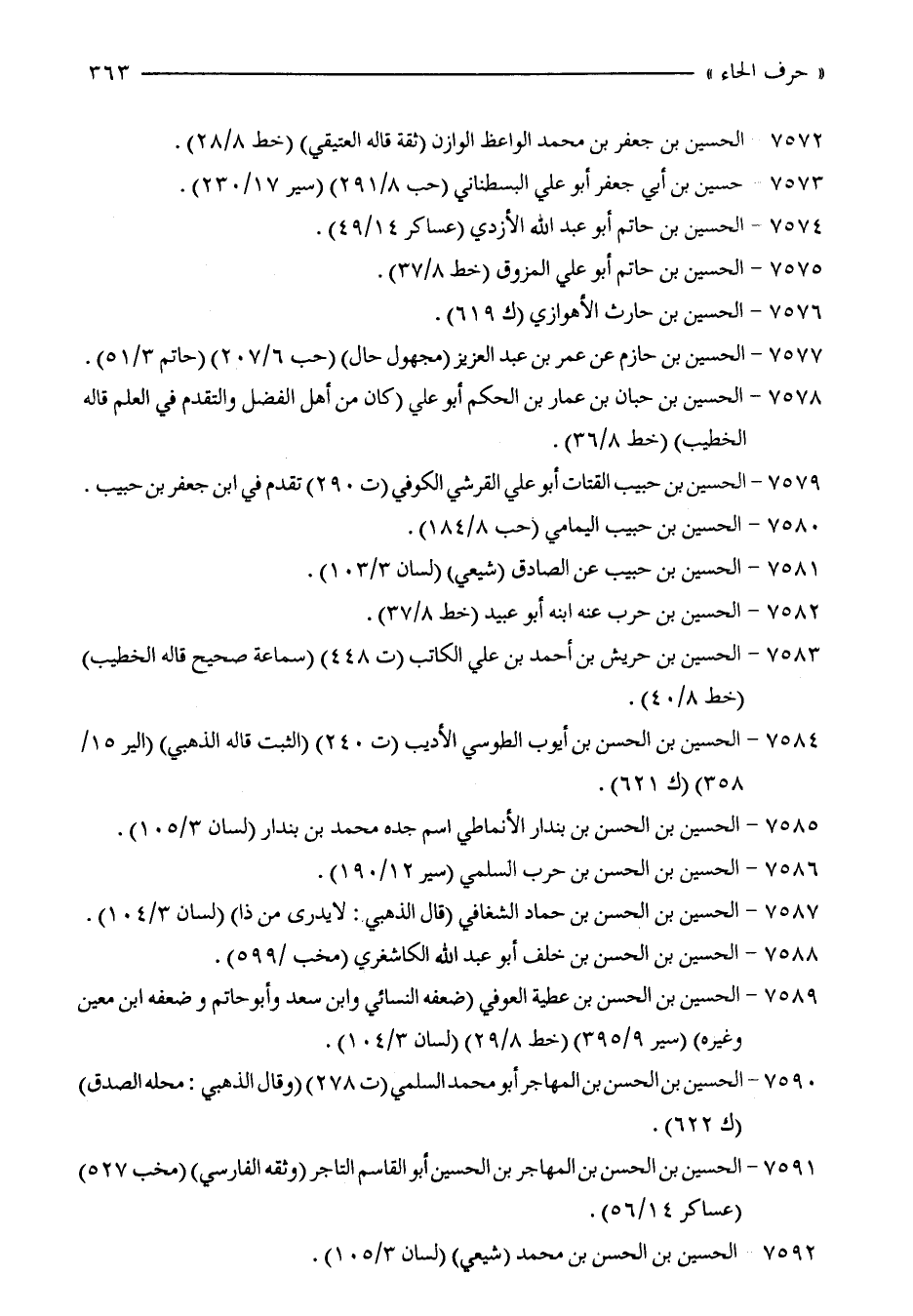 7578 - الحسين بن حبان بن عمار بن الحكم أبو علي (كان من أهل الفضل والتقدم في العلم قاله الخطيب) (خط 8/ 36).