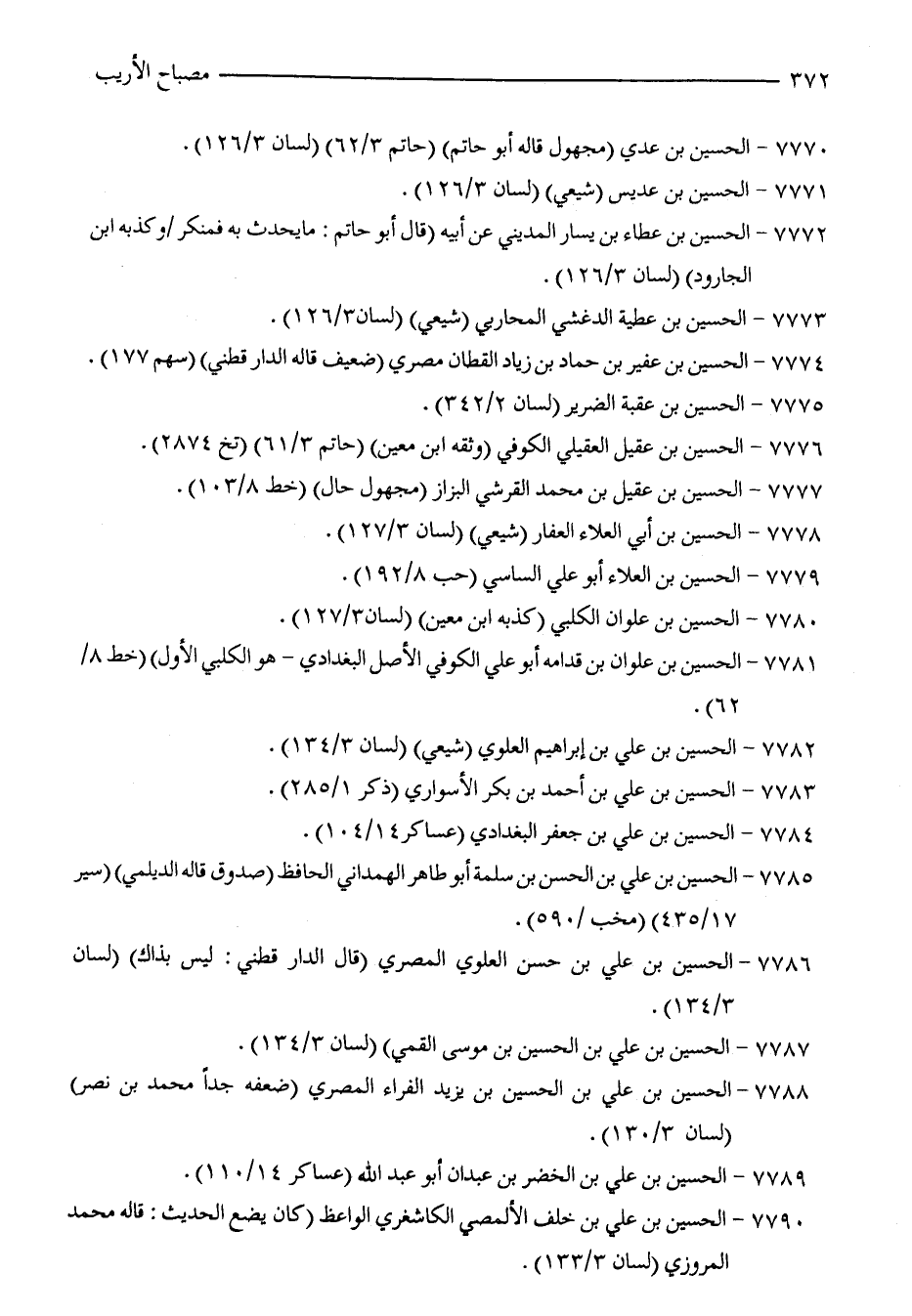 7782 - الحسين بن علي بن إبراهيم العلوي (شيعي) (لسان 3/ 134).