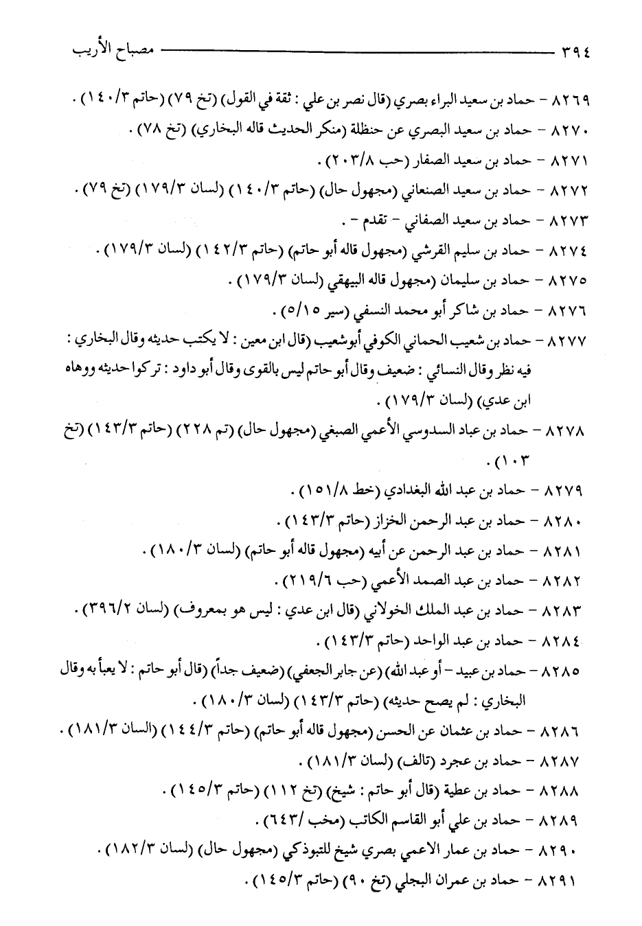 8272 - حماد بن سعيد الصنعاني (مجهول حال) (حاتم 3/ 140) (لسان 3/ 179) (تخ 79).