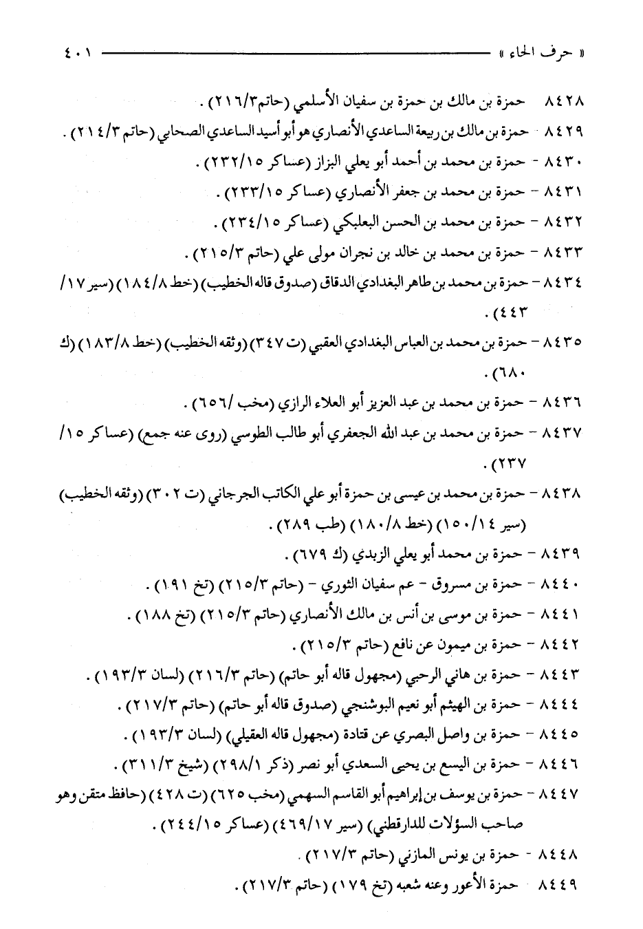 8434 - حمزة بن محمّد بن طاهر البغدادي الدقاق (صدوق قاله الخطيب) (خط 8/ 184) (سير 17/ 443).