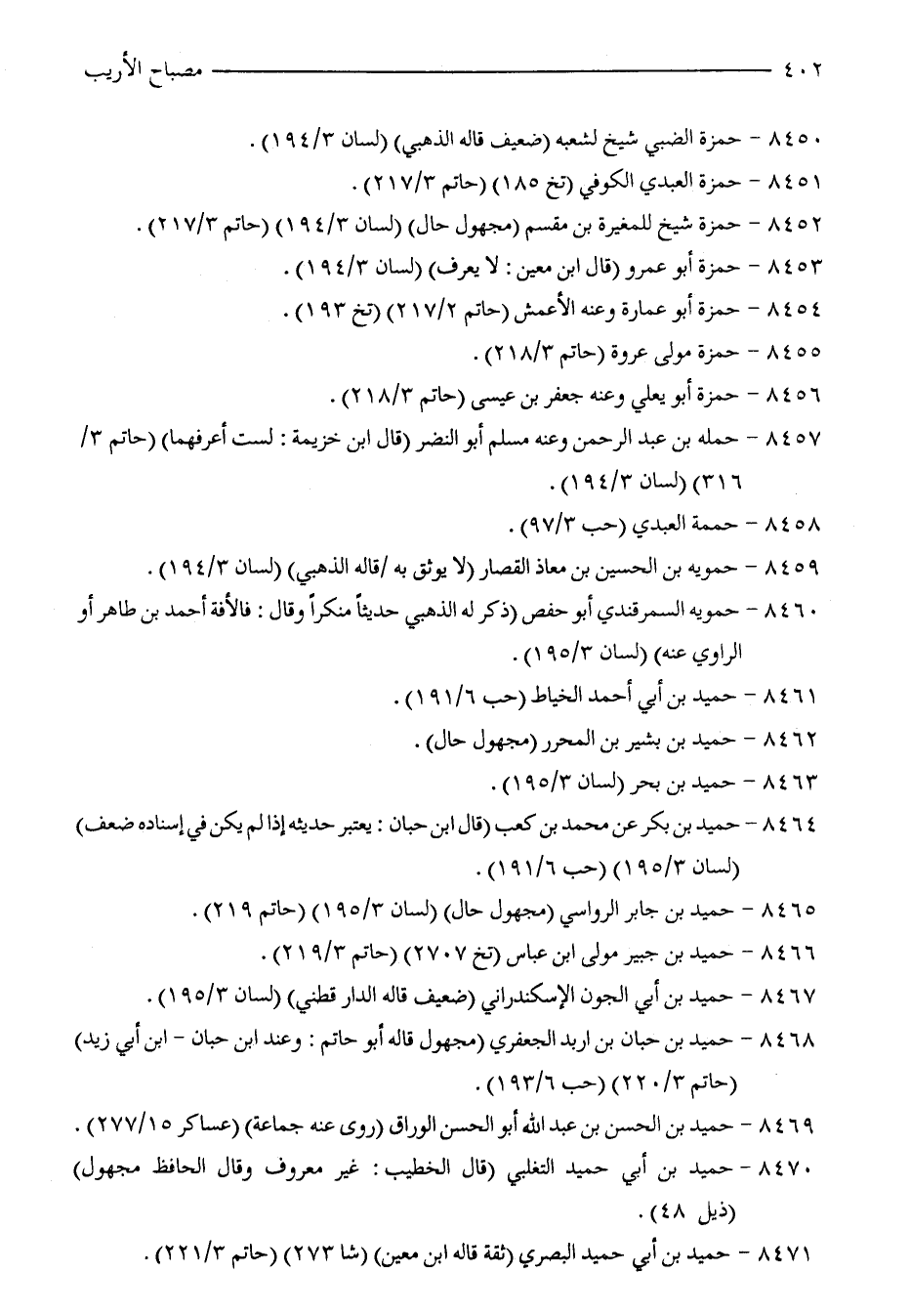 8452 - حمزة شيخ للمغيرة بن مقسم (مجهول حال) (لسان 3/ 194) (حاتم 3/ 217).