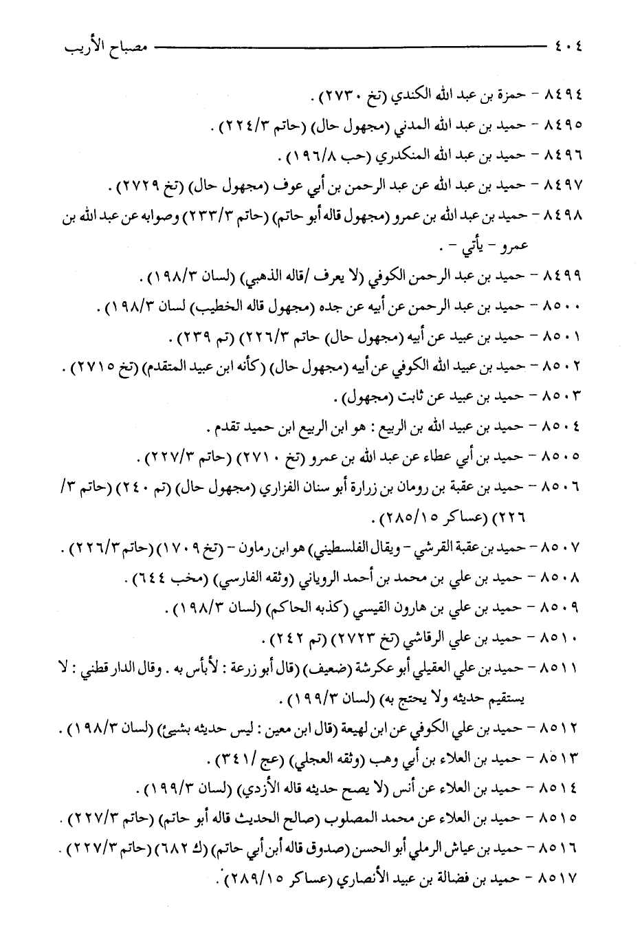 8507 - حميد بن عقبة القرشي -ويقال الفلسطيني) هو ابن رماون- (تخ 1709) (حاتم 3/ 226).
