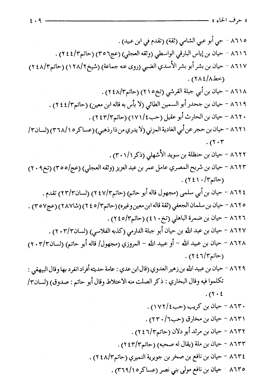 8626 - حيان بن ضمرة الباهلي (تخ 410) (حاتم 3/ 245).