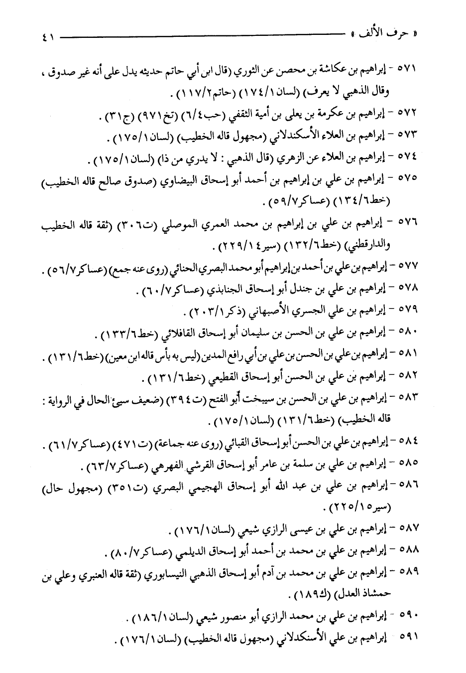 587 - إبراهيم بن علي بن عيسى الرازي شيعي (لسان 1/ 176).