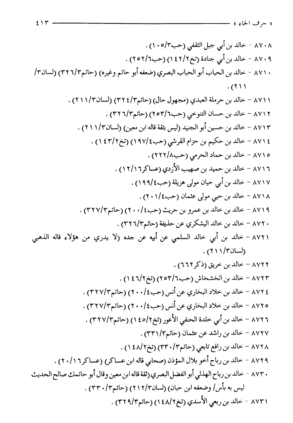 8711 - خالد بن حرملة العبدي (مجهول حال) (حاتم 3/ 324) (لسان 3/ 211).