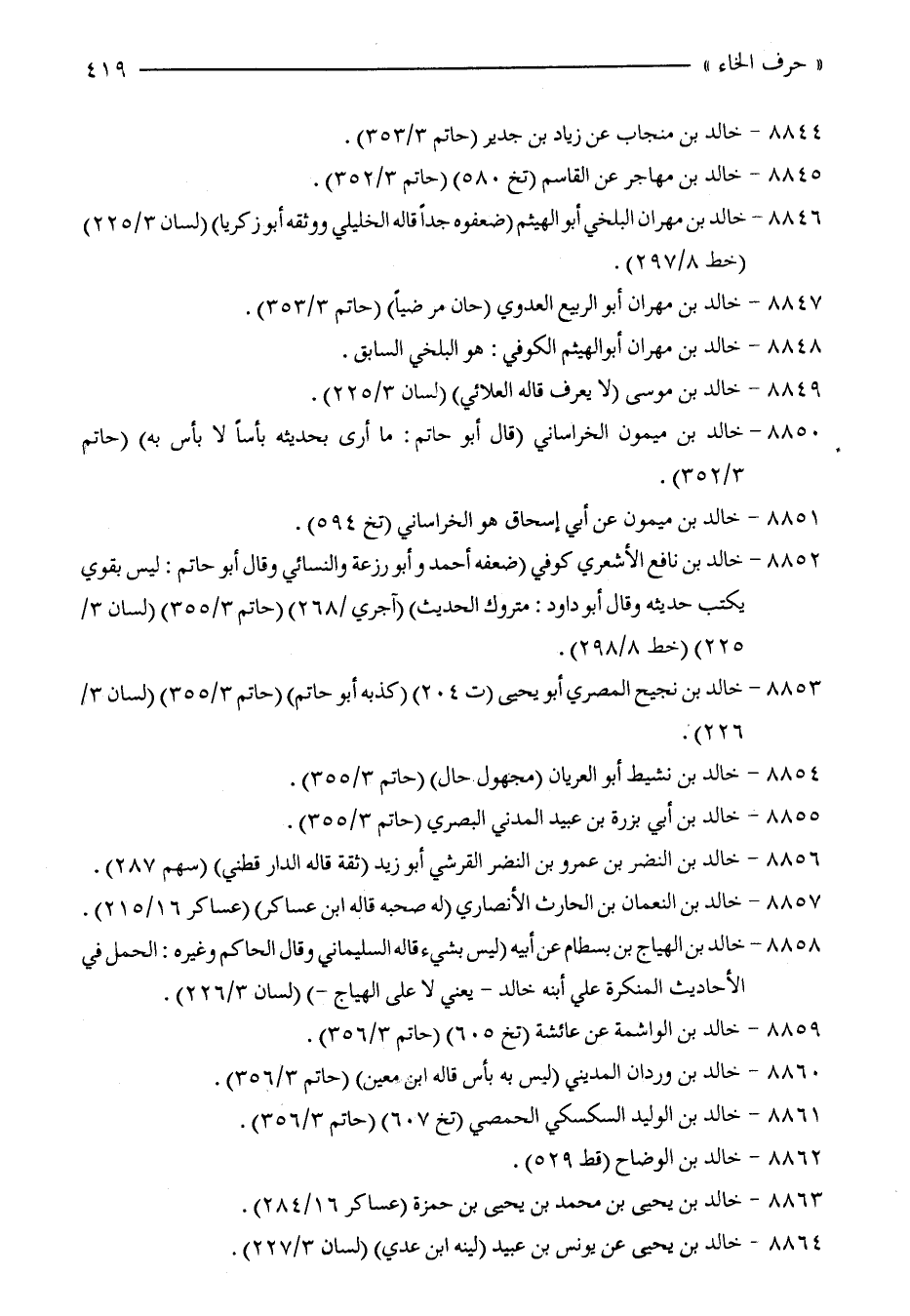 8846 - خالد بن مهران البلخي أبو الهيثم (ضعفوه جدًّا قاله الخليلي ووثقه أبو زكريا) (لسان 3/ 225) (خط 8/ 297).