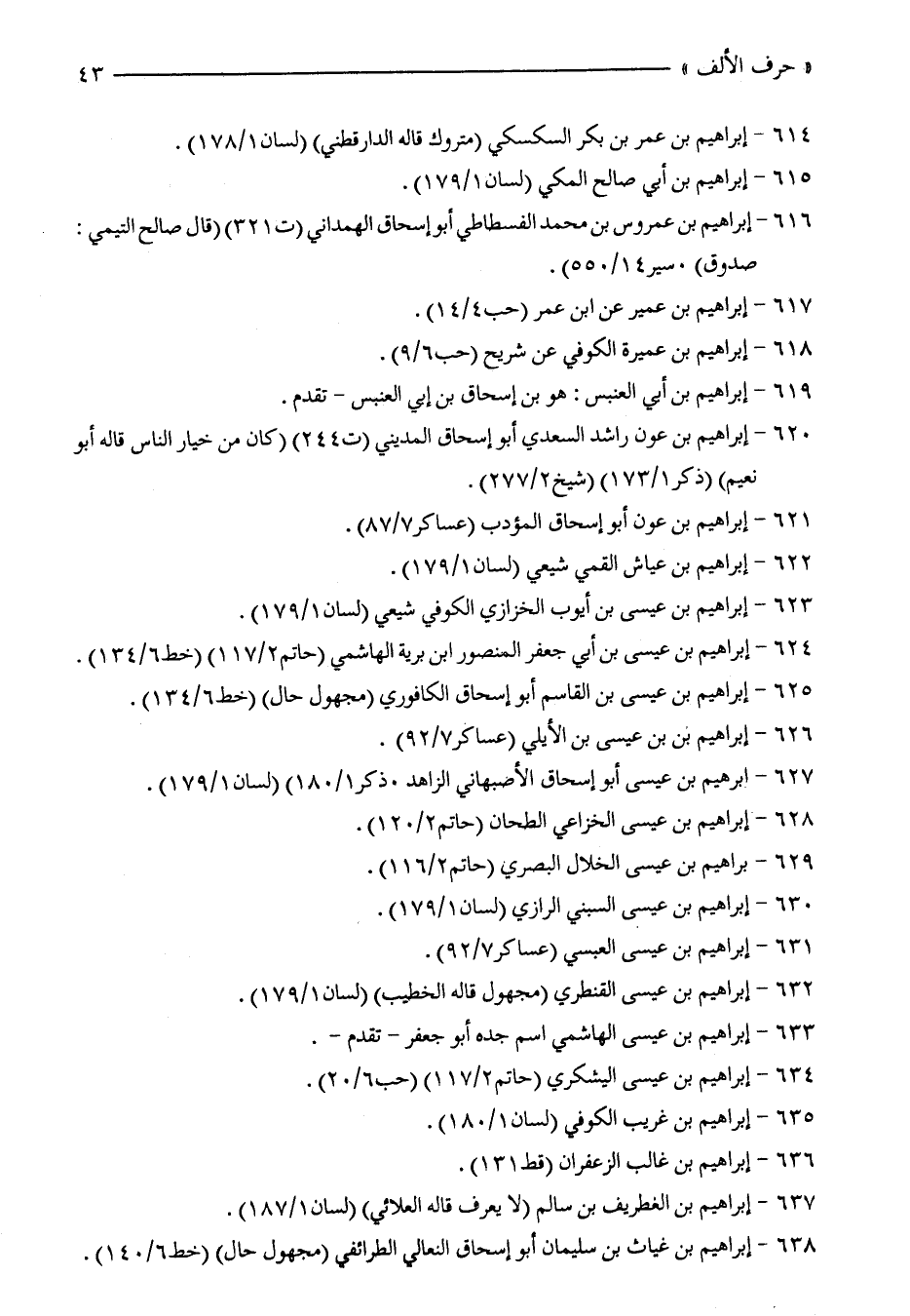 637 - إبراهيم بن الغطريف بن سالم (لا يعرف قاله العلائي) (لسان 1/ 187).
