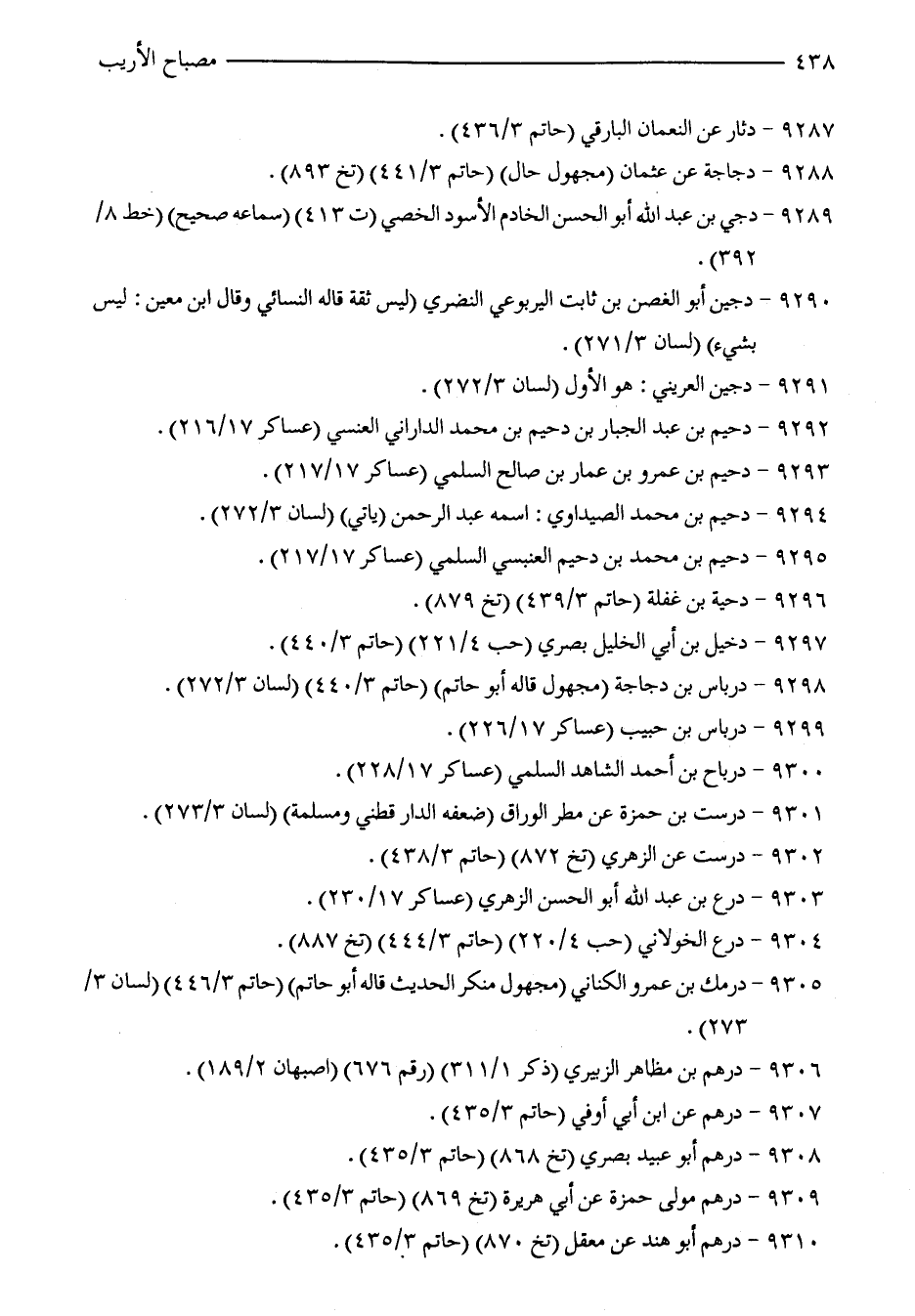 9300 - درباح بن أحمد الشّاهد السلمي (عساكر 17/ 228).