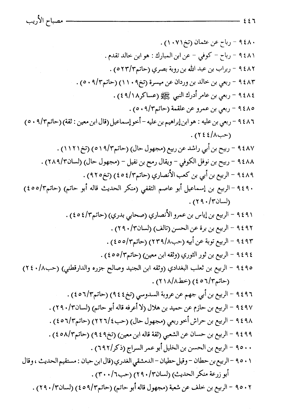 9481 - رباح - كوفي - عن ابن المبارك: هو ابن خالد تقدّم.