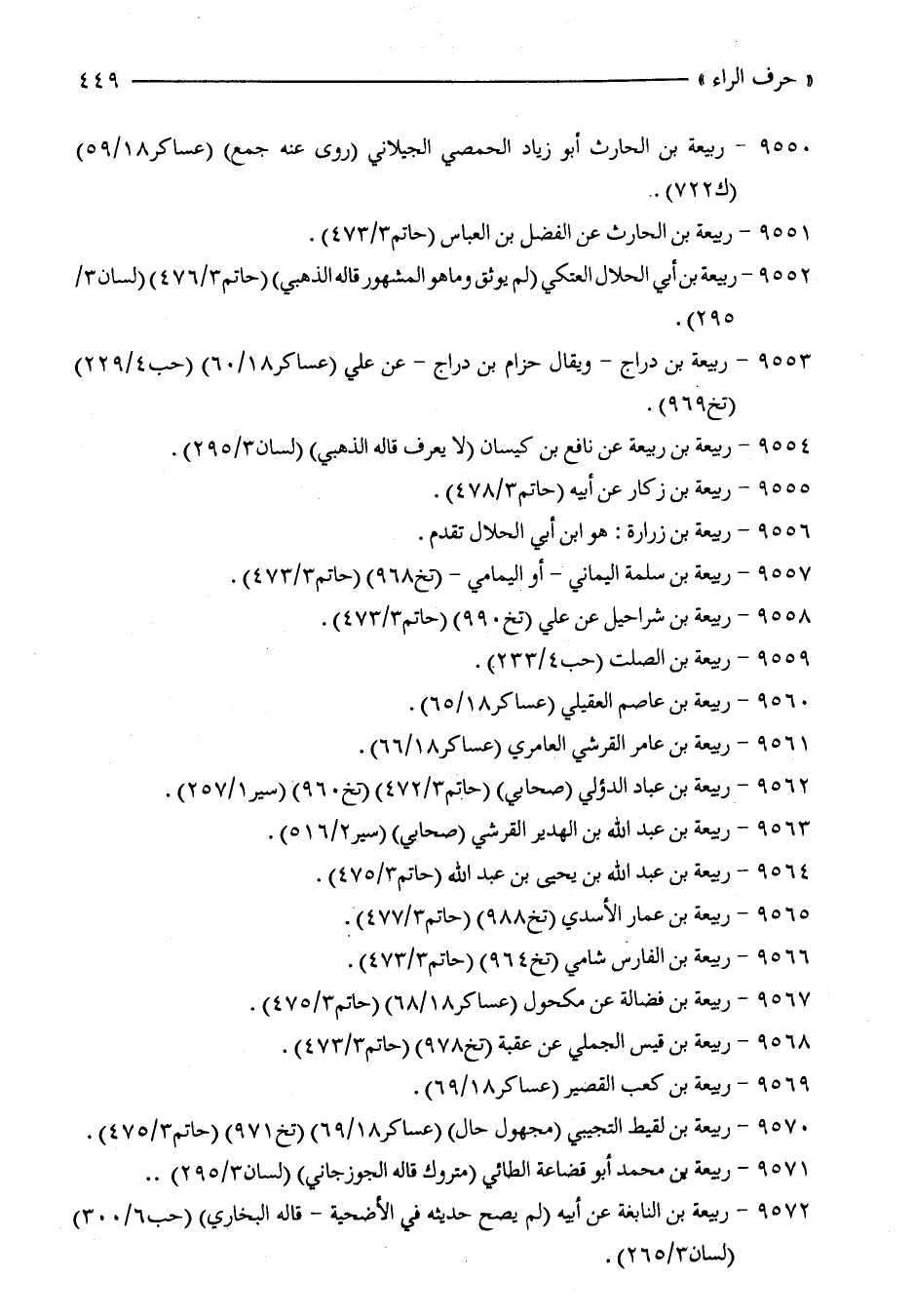 9557 - ربيعة بن سلمة اليماني - أو اليمامي - (تخ 968) (حاتم 3/ 473).