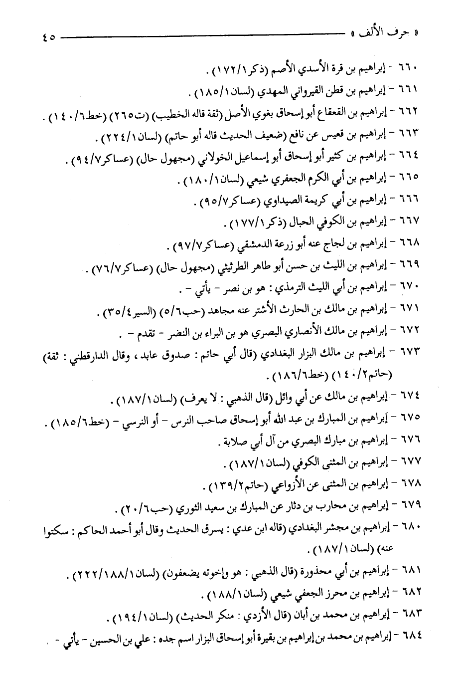 665 - إبراهيم بن أبي الكرم الجعفري شيعي (لسان 1/ 180).