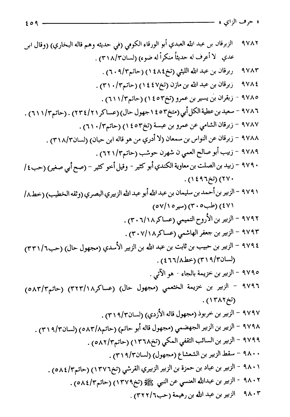 9797 - الزبير بن خربوذ (مجهول قاله الأزدي) (لسان 3/ 319).