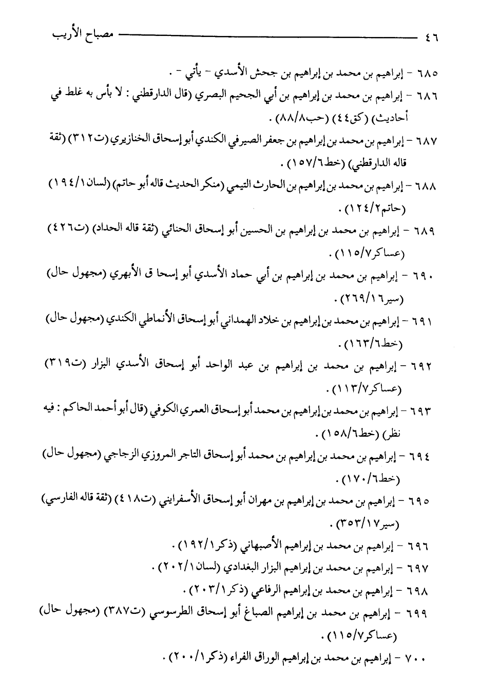 686 - إبراهيم بن محمد بن إبراهيم بن أبي الجحيم البصري (قال الدارقطني: لا بأس به غلط في أحاديث) (كق 44) (حب 8/ 88).