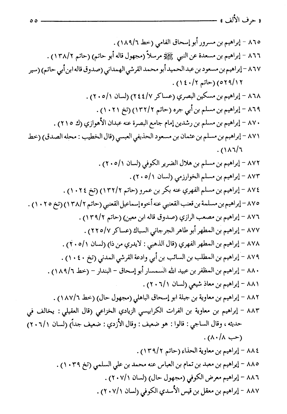 884 - إبراهيم بن معاوية الحذاء (حاتم 2/ 139).