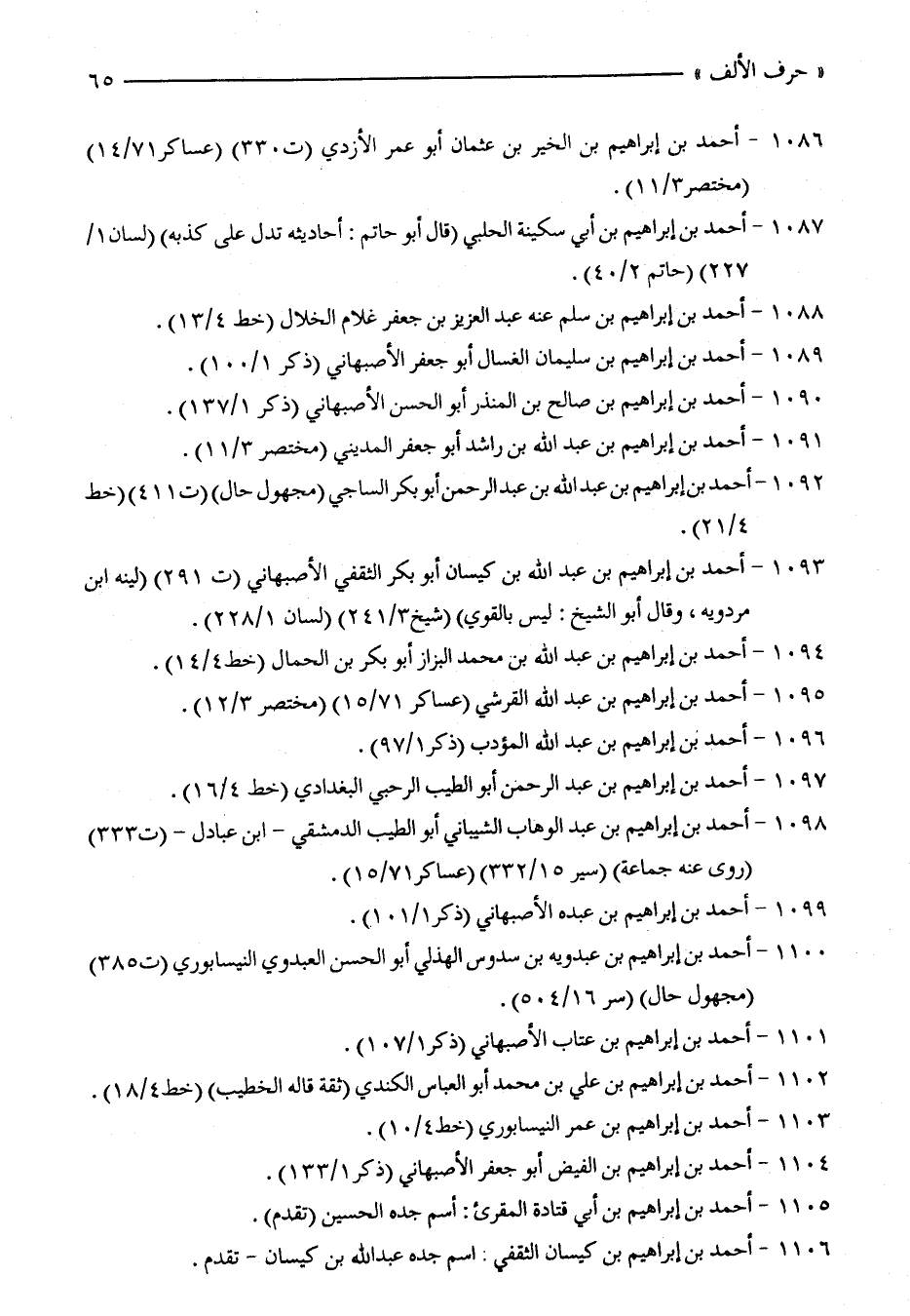 1088 - أحمد بن إبراهيم بن سلم عنه عبد العزيز بن جعفر غلام الخلال (خط 4/ 13).