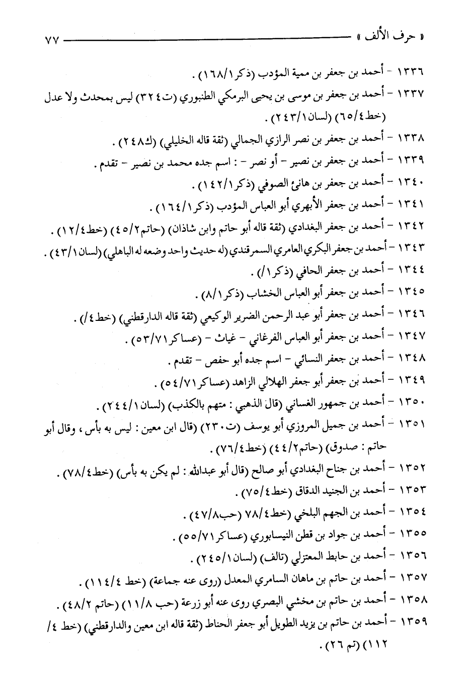 1342 - أحمد بن جعفر البغدادي (ثقة قاله أبو حاتم وابن شاذان) (حاتم 2/ 45) (خط 4/ 12).