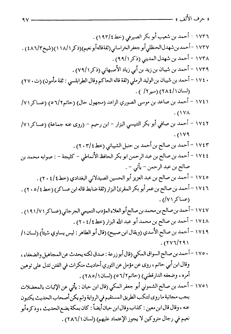 1740 - أحمد بن شيبان بن الوليد الرملي (ثقة قاله الحاكم وقال الطرابلسي: ثقة مأمون) (ت 270) (لسان 1/ 284) (سير 2/).