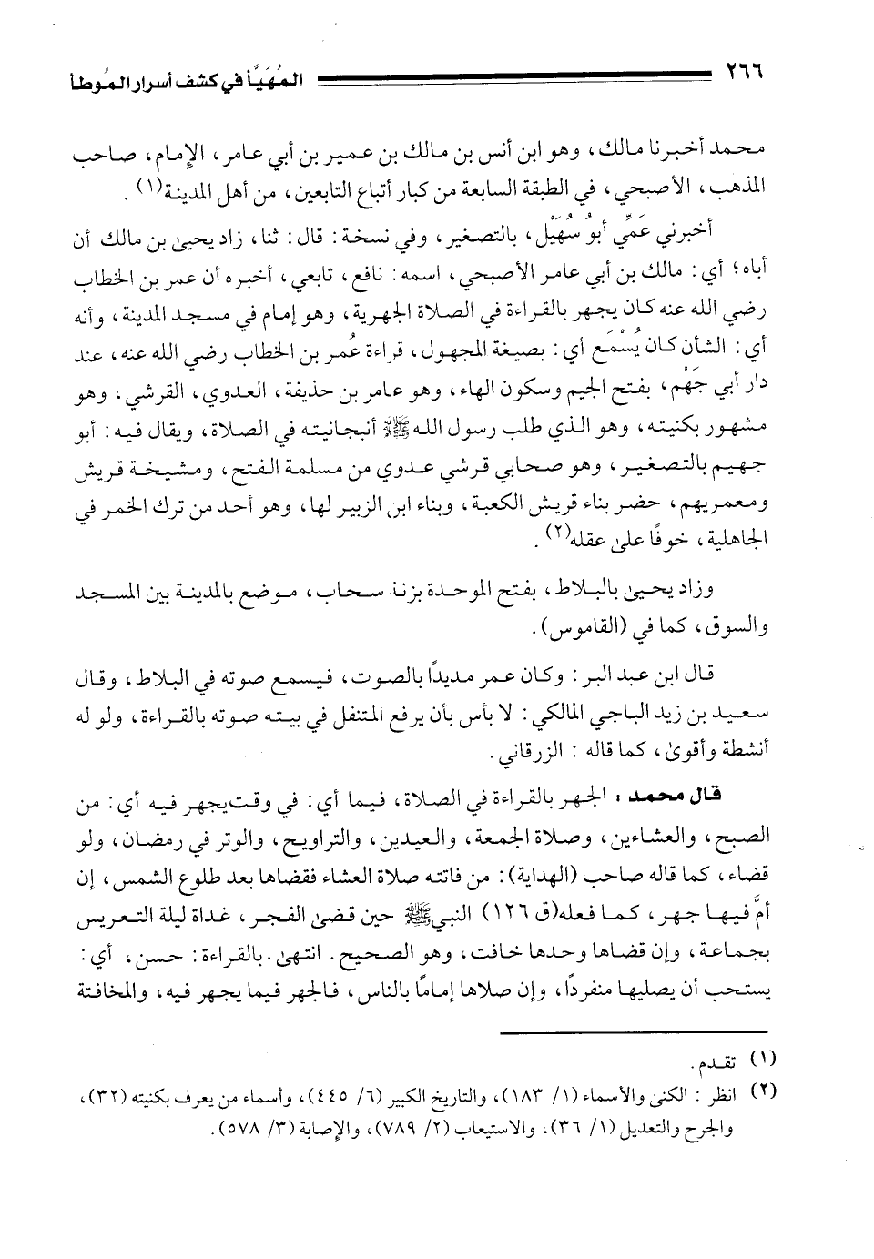أخبرني عَمِّي أبُو سُهَيْل، بالتصغير، وفي نسخة: قال: ثنا، زاد يحيى بن مالك أن أباه؛ أي: مالك بن أبي عامر الأصبحي، اسمه: نافع، تابعي، أخبره أن عمر بن الخطاب رضي الله عنه كان يجهر بالقراءة في الصلاة الجهرية، وهو إمام في مسجد المدينة، وأنه أي: الشأن كان يُسْمَع أي: بصيغة المجهول، قراءة عُمر بن الخطاب رضي الله عنه، عند دار أبي جَهْم، بفتح الجيم وسكون الهاء، وهو عامر بن حذيفة، العدوي، القرشي، وهو مشهور بكنيته، وهو الذي طلب رسول الله - صلى الله عليه وسلم - أنبجانيته في الصلاة، ويقال فيه: أبو جهيم بالتصغير، وهو صحابي قرشي عدوي من مسلمة الفتح، ومشيخة قريش ومعمريهم، حضر بناء قريش الكعبة، وبناء ابن الزبير لها، وهو أحد من ترك الخمر في الجاهلية، خوفًا على عقله (¬2).