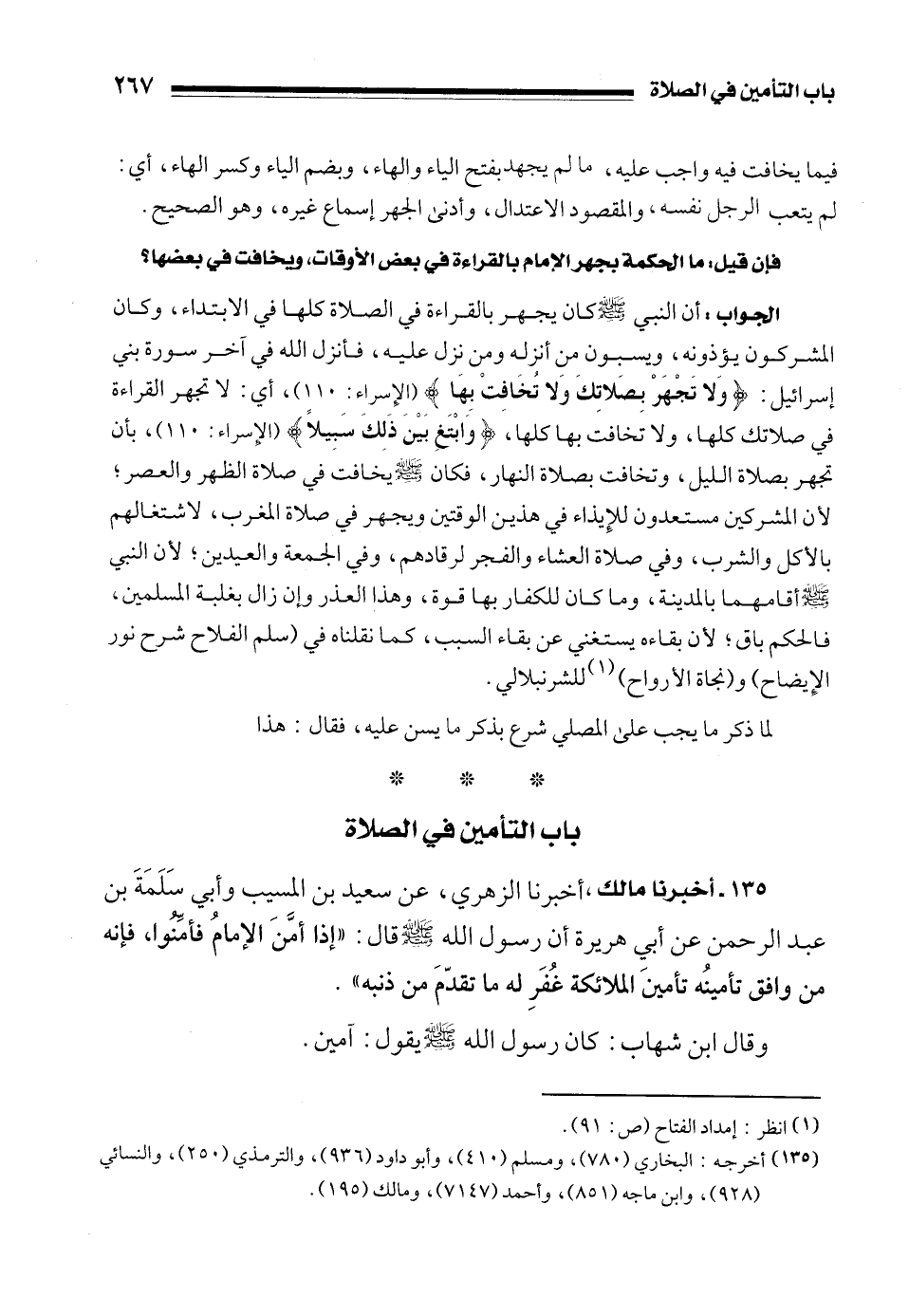 (135) أخرجه: البخاري (780)، ومسلم (410)، وأبو داود (936)، والترمذي (250)، والنسائي (928)، وابن ماجه (851)، وأحمد (7147)، ومالك (195).