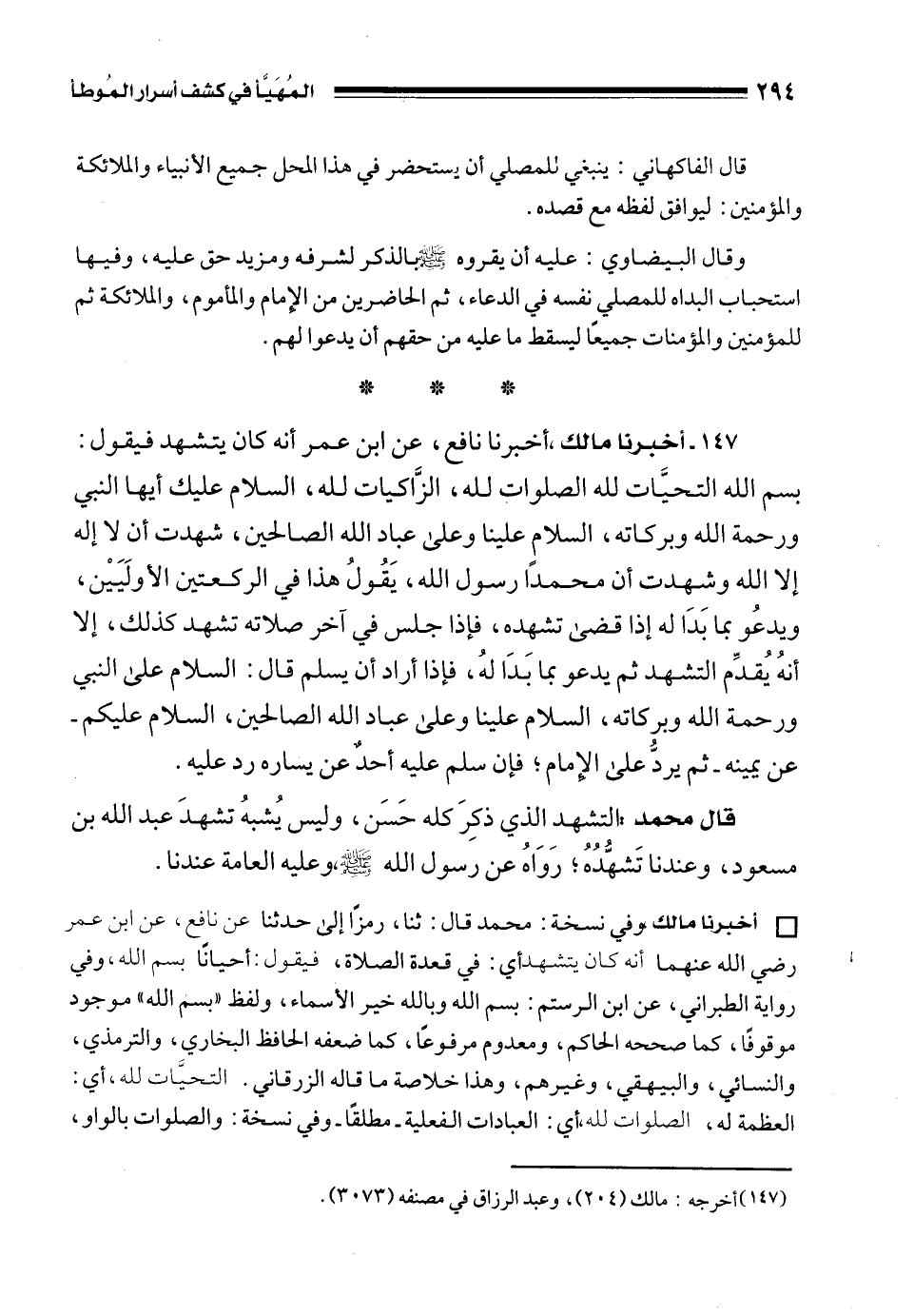 (147) أخرجه: مالك (204)، وعبد الرزاق في مصنفه (3073).