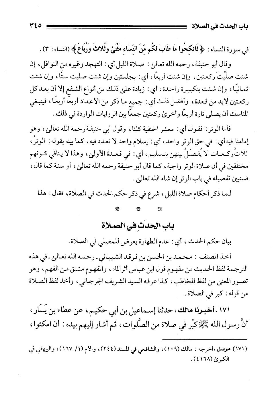 لما ذكر أحكام صلاة الليل، شرع في ذكر حكم الحدث في الصلاة، فقال: هذا