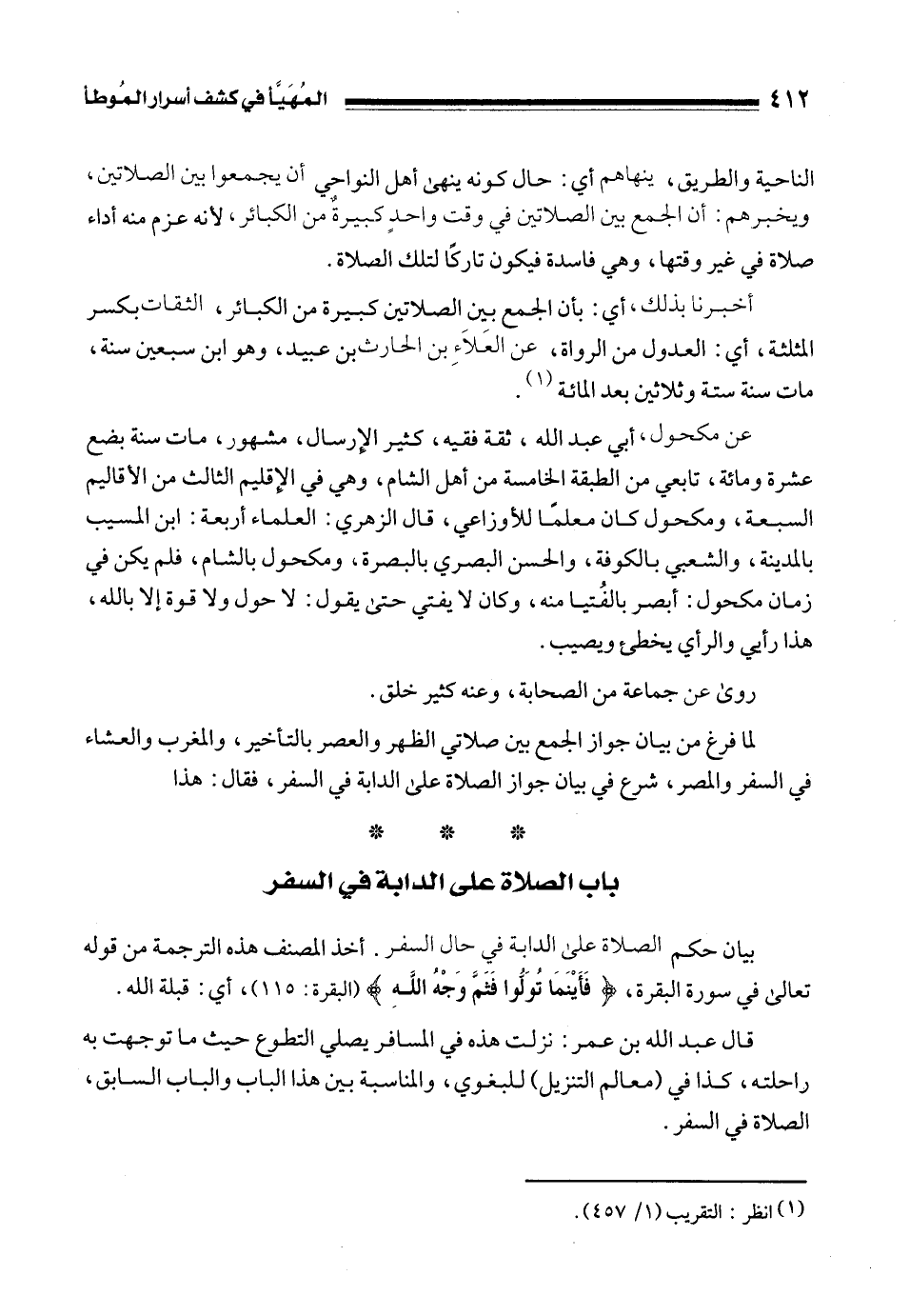 الناحية والطريق، ينهاهم أي: حال كونه ينهى أهل النواحي أن يجمعوا بين الصلاتين، ويخبرهم: أن الجمع بين الصلاتين في وقت واحدٍ كبيرةٌ من الكبائر، لأنه عزم منه أداء صلاة في غير وقتها، وهي فاسدة فيكون تاركًا لتلك الصلاة.