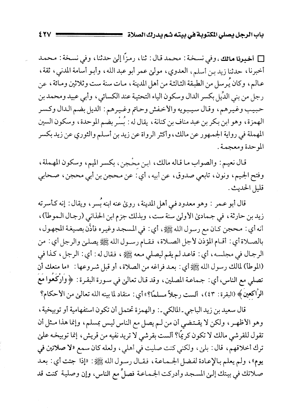• أخبرنا مالك، وفي نسخة: محمد قال: ثنا، رمزًا إلى حدثنا، وفي نسخة: محمد أخبرنا، حدثنا زيد بن أسلم، العدوي، مولى عمر أبو عبد الله، وأبو أسامة المدني، ثقة، عالم، وكان يُرسل من الطبقة الثالثة من أهل المدينة، مات سنة ست وثلاثين ومائة، عن رجل من بني الدِّيل بكسر الدال وسكون الياء التحتية عند الكسائي، وأبي عبيد ومحمد بن حبيب وغيرهم، وقال سيبويه والأخفش وحاتم وغيرهم: الديل بضم الدال وكسر الهمزة، وهو ابن بكر بن عبد مناف بن كنانة، يقال له: بُسْر بضم الموحدة، وسكون السين المهملة في رواية الجمهور عن مالك، وأكثر الرواة عن زيد بن أسلم والثوري عن زيد بكسر الموحدة ومعجمة.