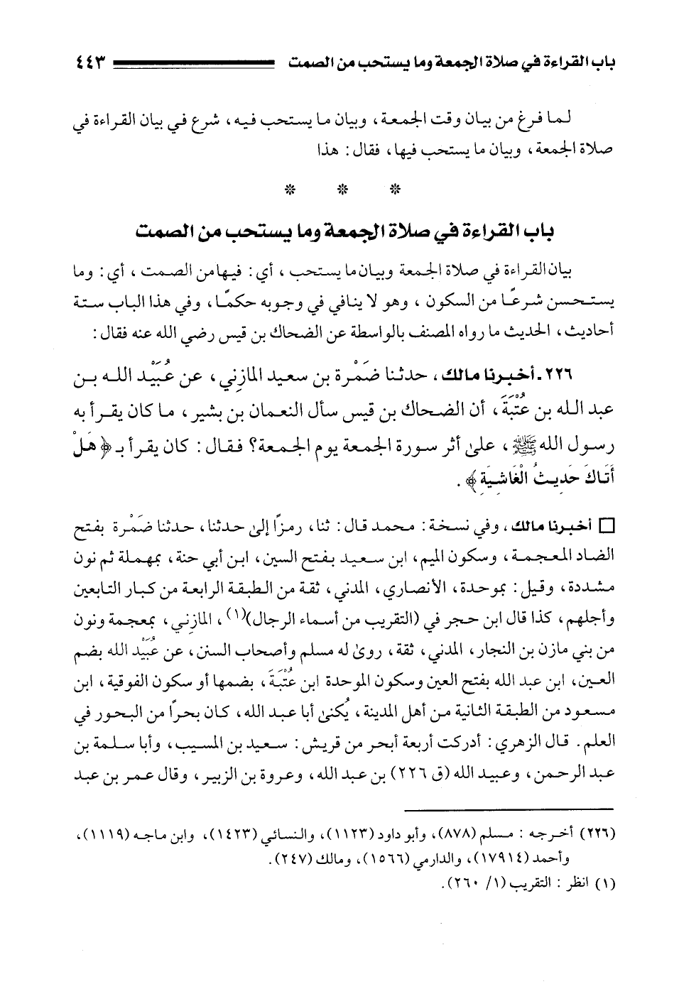 (226) أخرجه: مسلم (878)، وأبو داود (1123)، والنسائي (1423)، وابن ماجه (1119)، وأحمد (17914)، والدارمي (1566)، ومالك (247).