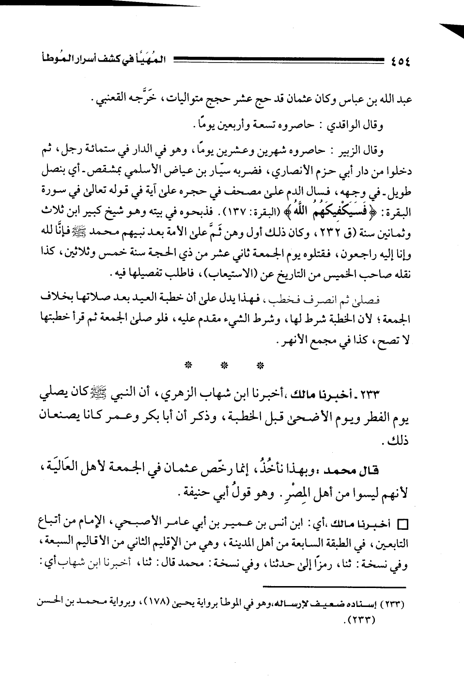 (233) إسناده ضعيف لإرساله، وهو في الموطأ برواية يحيى (178)، وبرواية محمد بن الحسن (233).