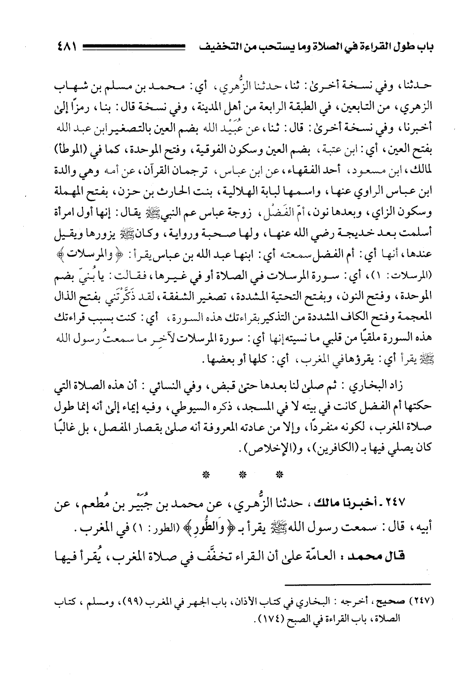 (247) صحيح، أخرجه، البخاري في كتاب الأذان، باب الجهر في المغرب (99)، ومسلم، كتاب الصلاة، باب القراءة في الصبح (174).