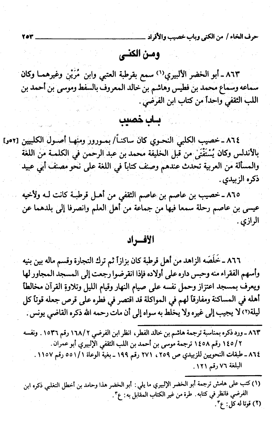 863 - أَبُو الْخضر الألبيري سمع بقرطبة الْعُتْبِي وَابْن مربن وَغَيرهمَا وَكَانَ سَمَاعه وَسَمَاع مُحَمَّد بْن فطيس وهَاشِم بْن خَالِد الْمَعْرُوف بالسفط ومُوسَى بْن أَحْمَد بْن اللب الثّقفيّ وَاحِدًا من كتاب ابْن الفَرَضيّ