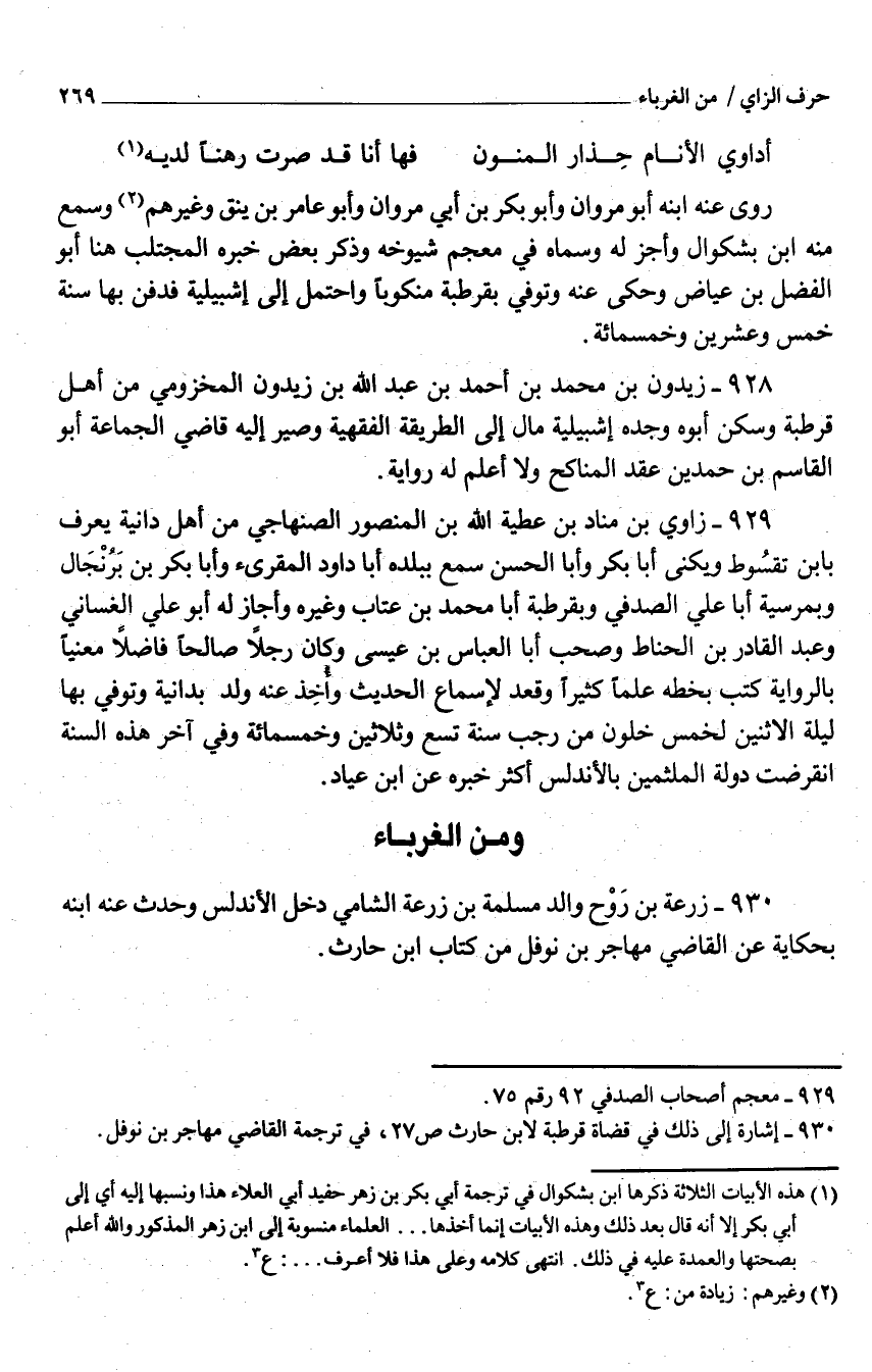 928 - زيدون بْن مُحَمَّد بْن أَحْمَد بْن عَبْد اللَّه بْن زيدون المَخْزُومِي من أَهْل قرطبة وَسكن أَبُوهُ وجده إشبيلية مَال إِلَى الطَّرِيقَة الْفِقْهِيَّة وصير إِلَيْهِ قَاضِي الْجَمَاعَة أَبُو القَاسِم بْن حمدين عقد المناكح وَلَا أعلم لَهُ رِوَايَة
