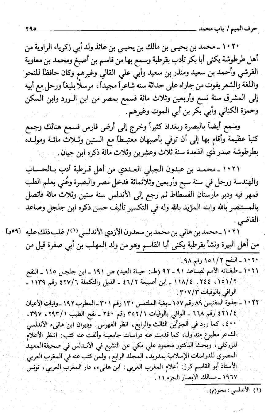 1021 - مُحَمَّد بْن هاني بْن مُحَمَّد بْن سعدون الْأَزْدِيّ الأندلسيّ غلب ذَلِكَ عَلَيْهِ من أَهْل البيرة وَنَشَأ بقرطبة يكنى أَبَا القَاسِم وَهُوَ من وُلِدَ الْمُهلب بْن أبي صفرَة قيل من