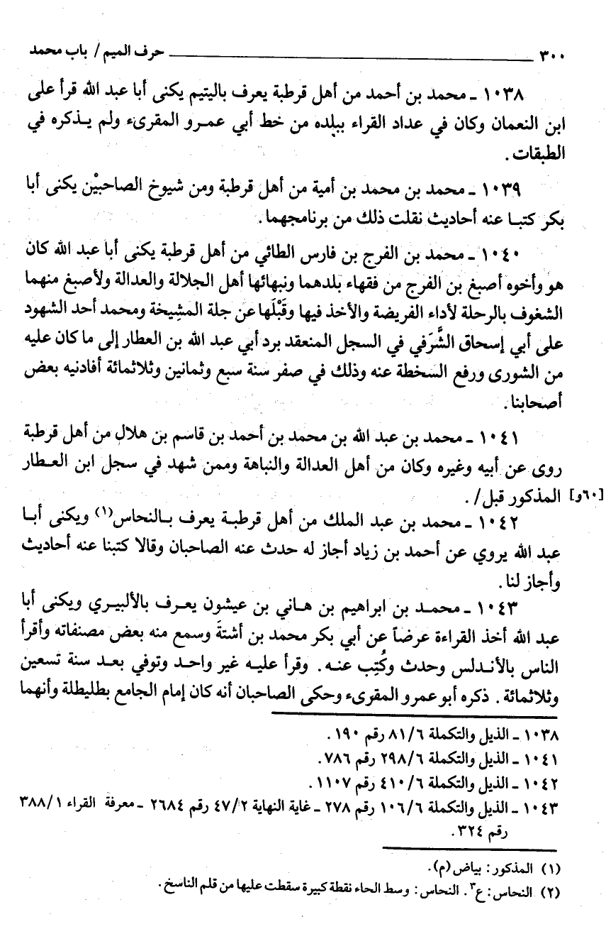 1039 - مُحَمَّد بْن مُحَمَّد بْن أُميَّة من أَهْل قرطبة وَمن شُيُوخ الصاحبيْن يكنى أَبَا بَكْر كتبا عَنْهُ أَحَادِيث نقلت ذَلِكَ من برنامجهما