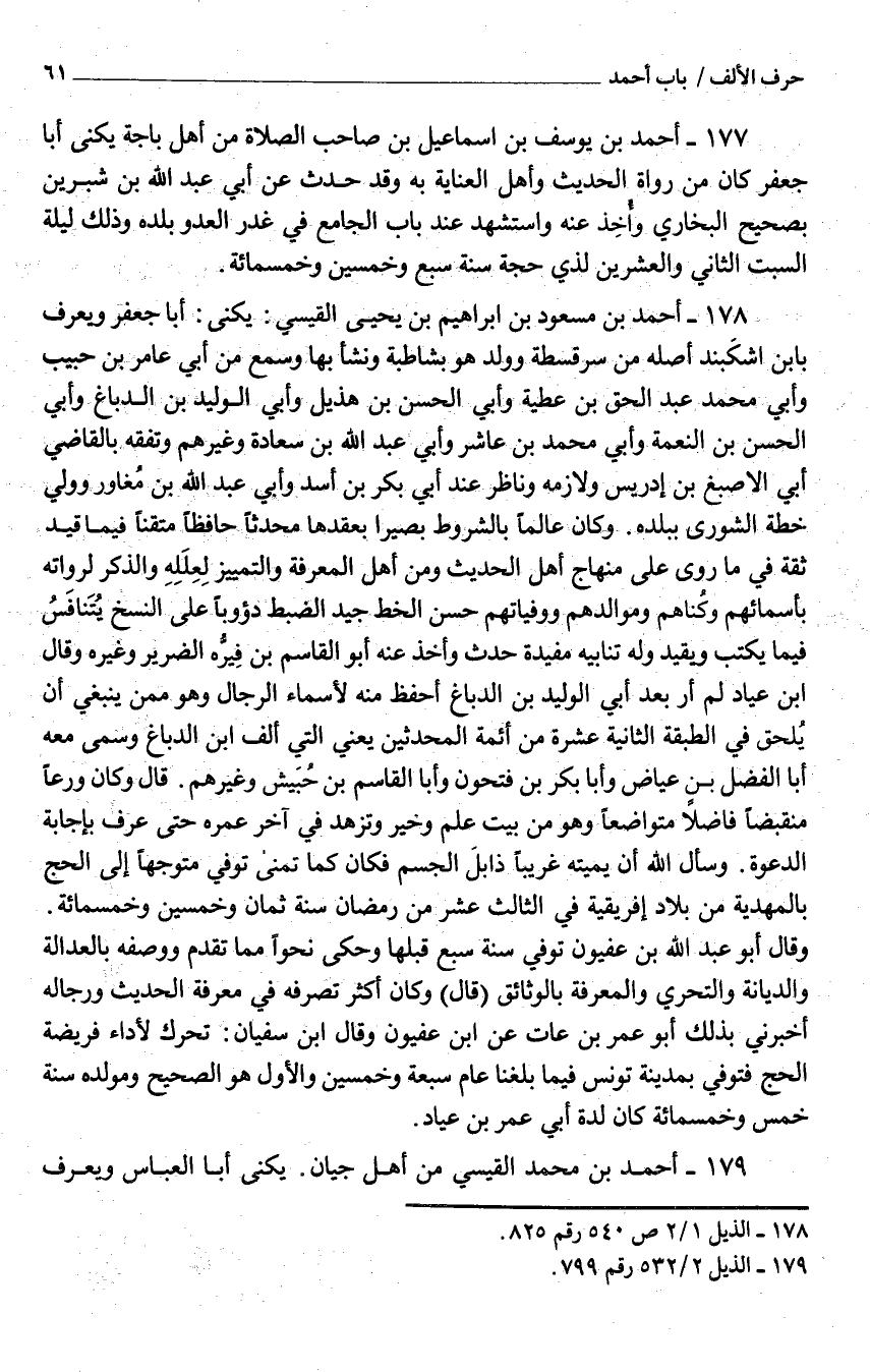 177 - أَحْمَد بْن يُوسُف بْن إِسْمَاعِيل بْن صَاحب الصَّلاة من أَهْلَ باجة يكنى أَبَا جَعْفَر كَانَ من رُوَاة الحَدِيث وَأهل الْعِنَايَة بِهِ وَقد حدَّث عَنْ أبي عَبْد اللَّه بْن شبرين بِصَحِيح الْبُخَارِيّ وأُخِذَ عَنْهُ وَاسْتشْهدَ عِنْدَ بَاب الْجَامِع فِي غدر العدوّ بَلَده وَذَلِكَ لَيْلَة السبت الثَّانِي وَالْعِشْرين لذِي حجَّة سنة سبع وَخمسين وَخَمْسمِائة