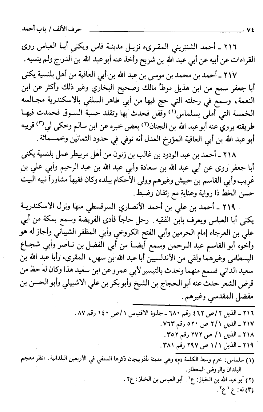 216 - أَحْمَد الشنتريني الْمُقْرِئ نزيل مَدِينَة فاس ويكنى أَبَا الْعَبَّاس روى الْقرَاءَات عَنْ أَبِيه عَنْ أبي عَبْد اللَّه بْن شُرَيْح وَأخذ عَنْهُ أَبُو عَبْد اللَّه بْن الدراج وَلم ينْسبهُ