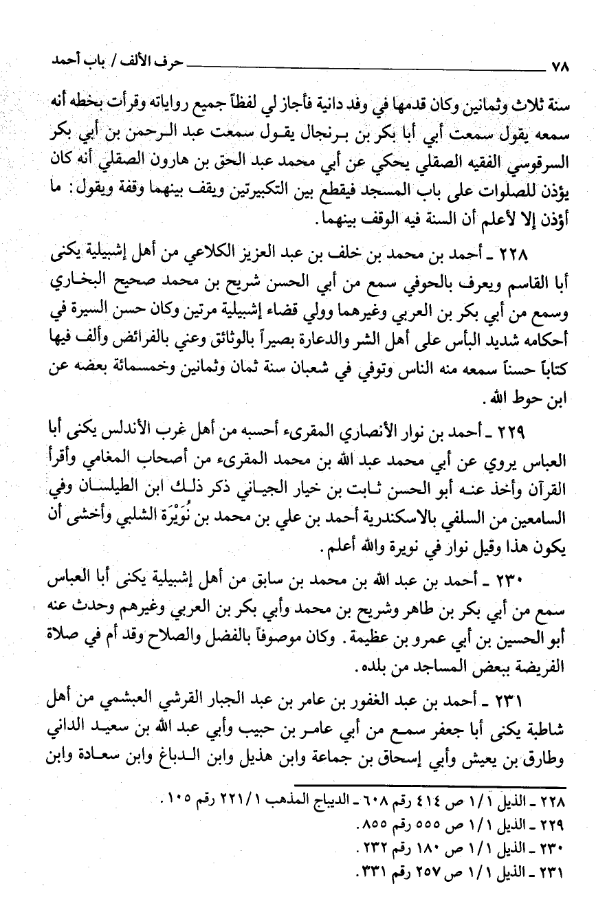231 - أَحْمَد بْن عَبْد الغفور بْن عَامر بْن عَبْد الجَبَّار الْقُرَشِيّ العبشمي من أَهْلَ شاطبة يكنى أَبَا جَعْفَر سَمِعَ من أبي عَامر بْن حبيب وَأبي عَبْد اللَّه بْن سَعِيد الداني وطارق بْن يعِيش وَأبي إِسْحَاق بْن جمَاعَة وَابْن هُذَيْل وَابْن الدّباغ وَابْن سَعَادَة وَابْن