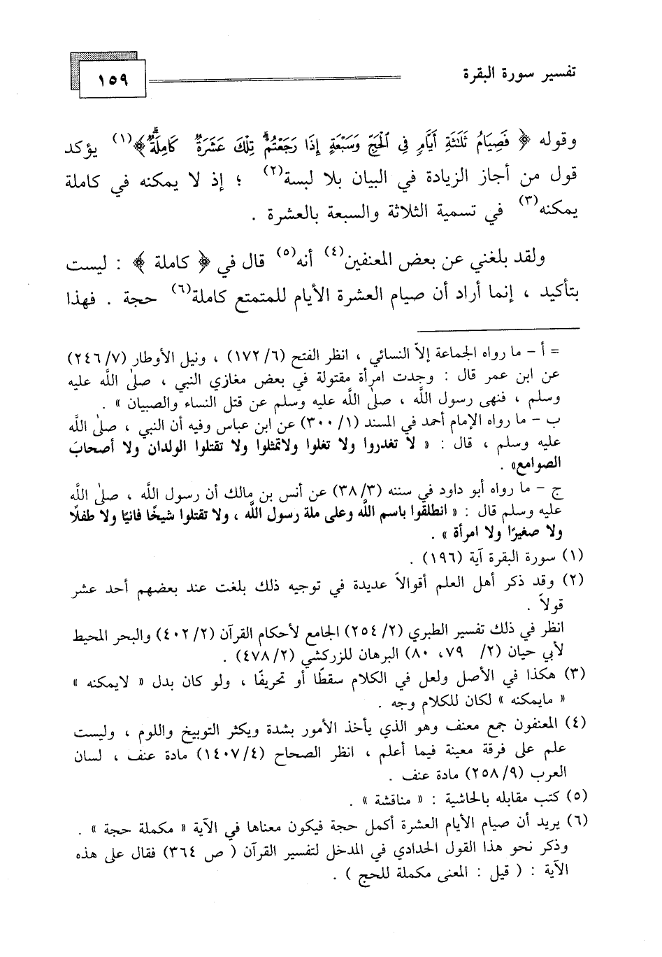 ولقد بلغني عن بعض المعنفين أنه قال في (كاملة) : ليست بتأكيد، إنما أراد أن صيام العشرة الأيام للمتمتع كاملة حجة. فهذا