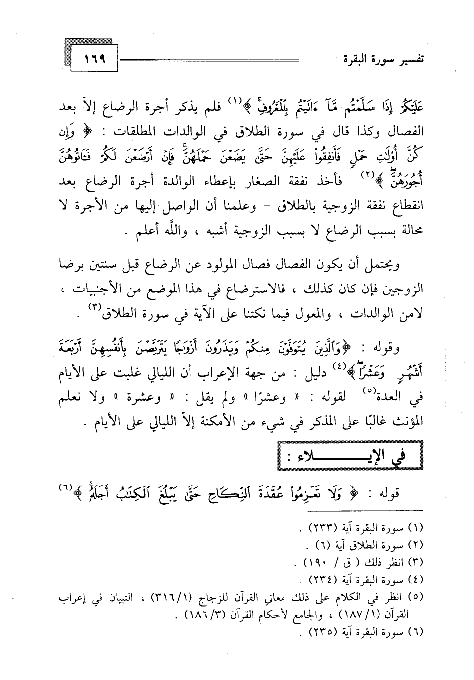 ويحتمل أن يكون الفصال فصال المولود عن الرضاع قبل سنتين برضا الزوجة فإن كان كذلك، فالاسترضاع في هذا الموضع من الأجنبيات، لأمن الوالدات، والمعول فيما نكتنا على الآية في سورة الطلاق.