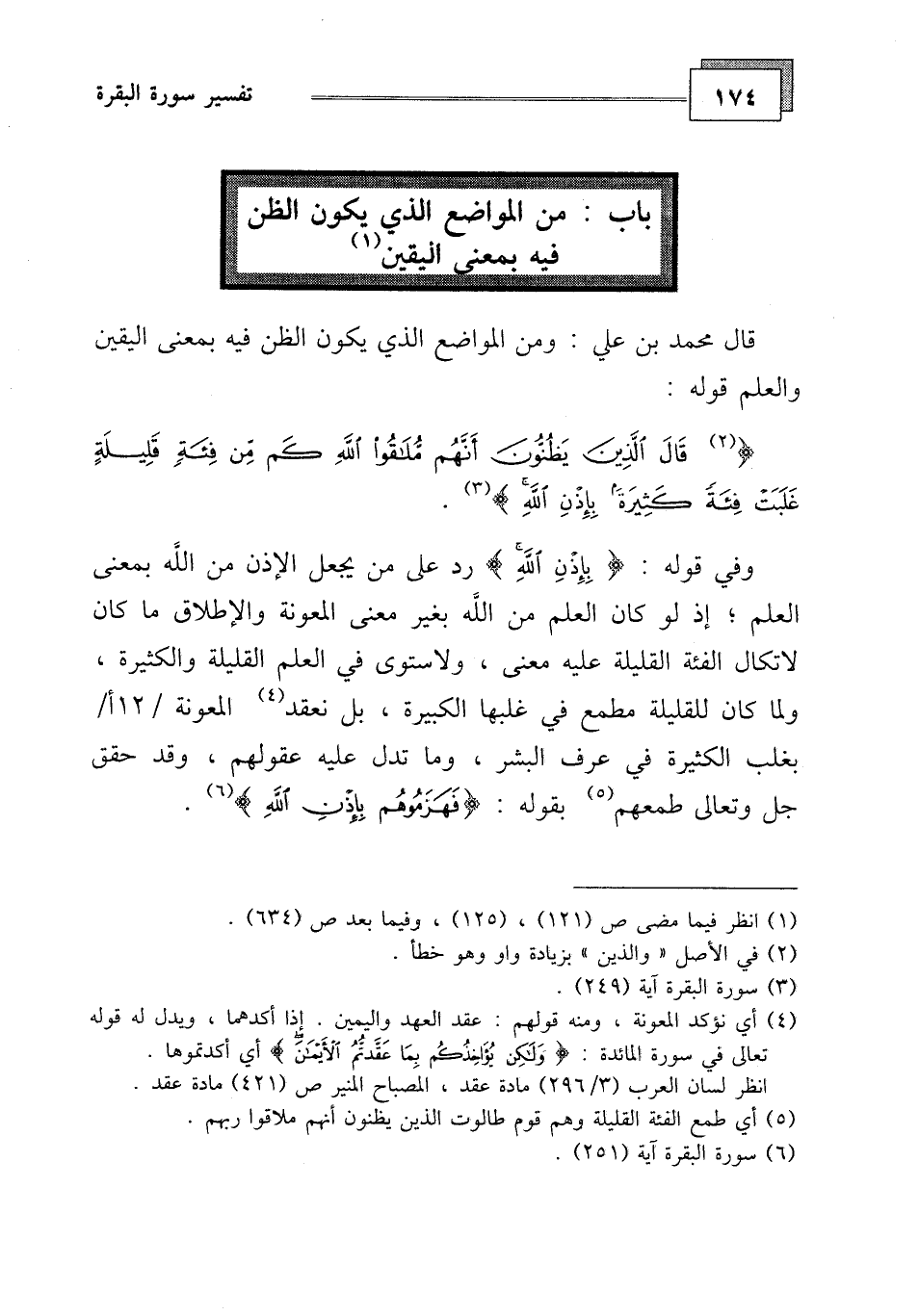 وفي قوله: (بِإِذْنِ اللَّهِ) وهو رد على من يجعل الإذن من الله بمعنى العلم، إذ لو كان العلم من الله بغير معنى المعونة والإطلاع ما كان لاتكال الفئة القليلة عليه معنى، ولاستوى في العلم القليلة والكثيرة، ولما كان للقليلة مطمع في غلبها الكبيرة، بل نعقد المعونة بطلب الكثيرة في عرف البشر، وما تدل عليه عقولهم، وقد حقق جل وتعالى طمعهم بقوله: (فَهَزَمُوهُمْ بِإِذْنِ اللَّهِ) .