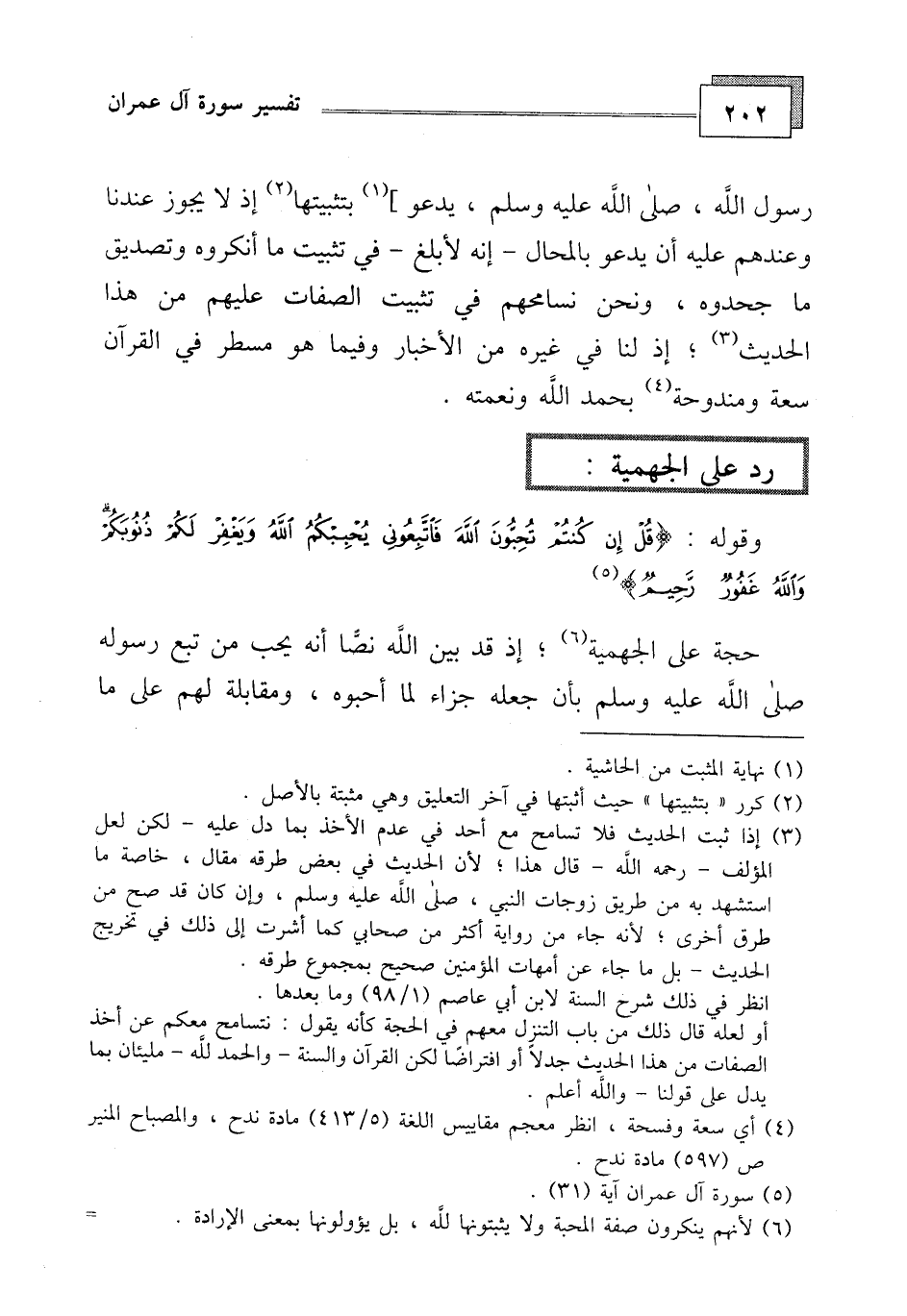 حجة على الجهمية، إذ قد بين الله نصاً أنه يحب من تبع رسوله - صلى الله عليه وسلم - بأن جعله جزاء لما أحبوه، ومقابلة لهم على ما